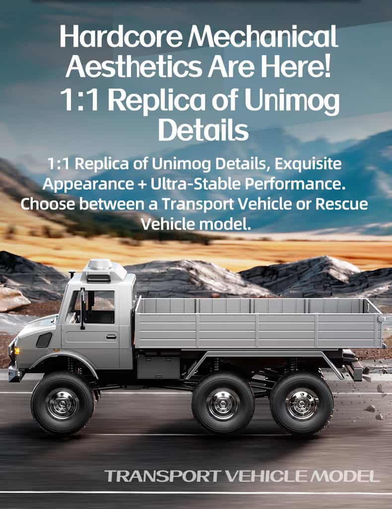 ✅ Модель с дистанционным управлением, шестиколесный привод, в масштабе 1:18, повторяющая реалистичный внешний вид Unimog в деталях. 🤩 Изящный дизайн делает её похожей на настоящий Unimog!