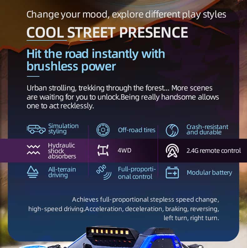 ✅ Полномасштабная синхронная система дистанционного управления 2,4 ГГц. Рулевое управление и дроссельная заслонка точно настраиваются, а высокие и низкие скорости регулируются автоматически. Полномасштабное управление дросселем и рулевым управлением. 🎮